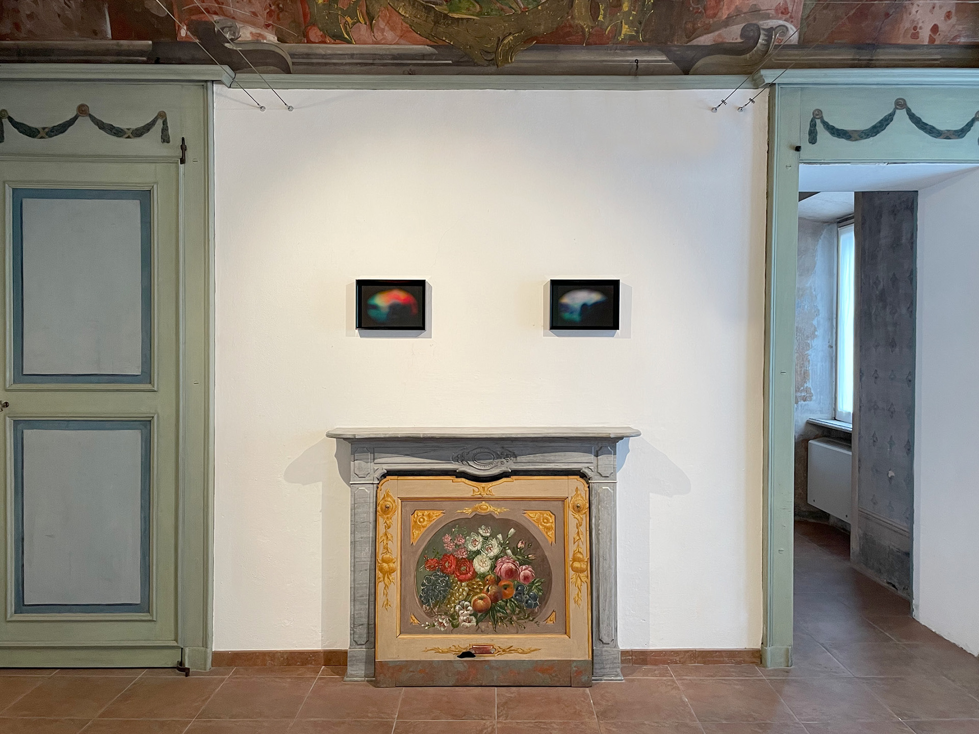 How does the process of visual nourishment and emotional knowledge of a place occur? What sticks in the memory? What impresses the eyes? The work explores the relationship between memory, open-eyed and closed-eyed visions, starting from the consideration that visual perception goes beyond the moment of open-eyed observation. The work takes the form of silk prints in different formats and a book with images corresponding to different states of consciousness (waking, sleeping) and observation (eyes open and eyes closed). Different images follow one another in the book. Photographs of the view of Lake Orta taken, at every hour of the day, by a webcam. The same images are then presented with eyes closed. When the eyes close, the image does not disappear immediately, but stops to keep us company, an echo remains to be seen. Other images are added to the image imprinted in the eye (and mind). The residual activity of the visual receptors continues.